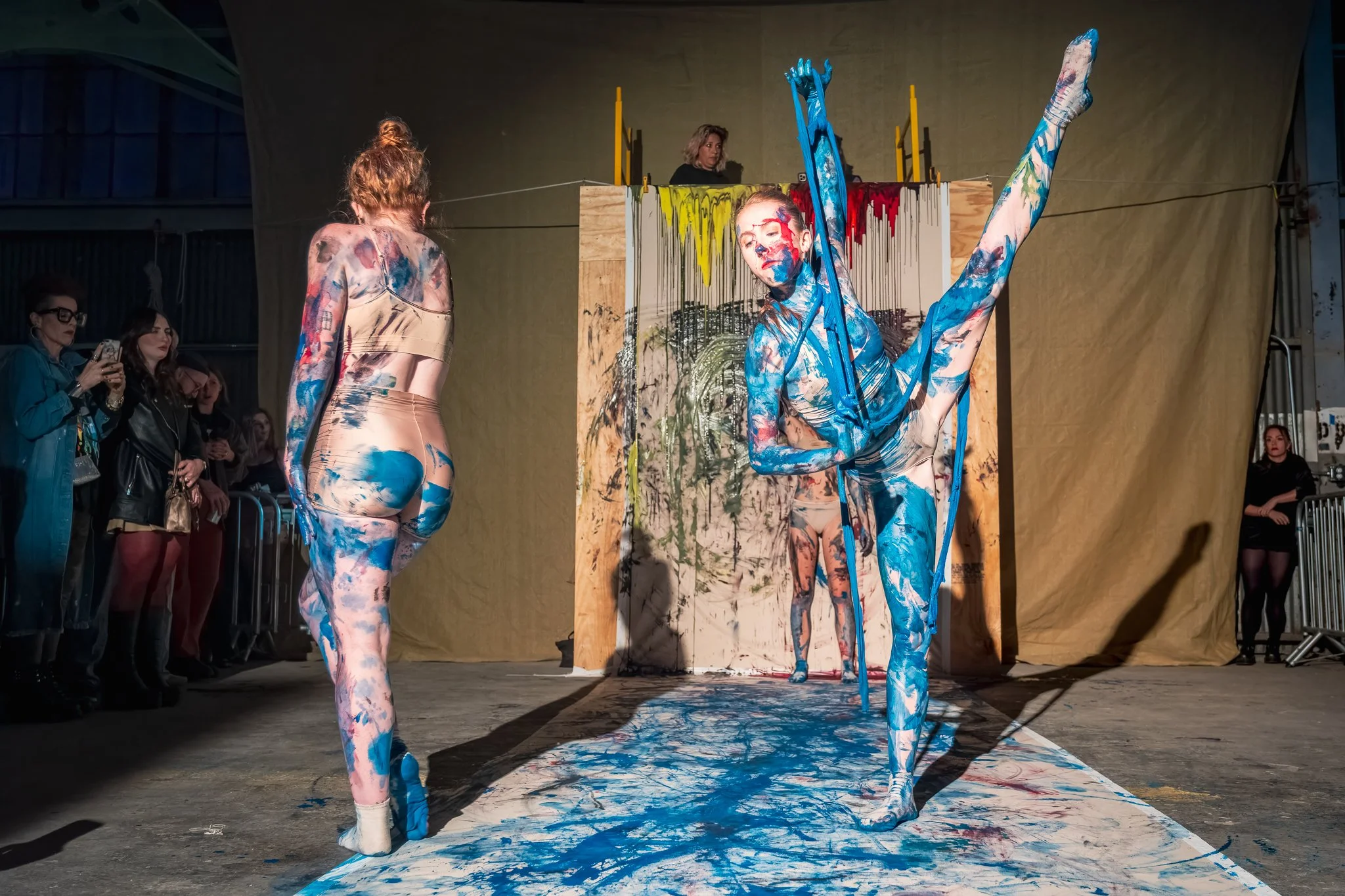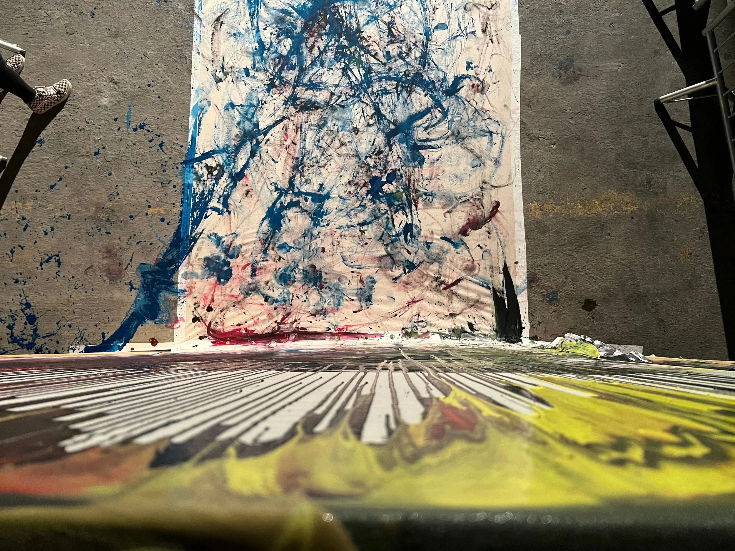 15 yards of canvas, a 10 foot wall, and scaffolding at Building 64. A live performance at Kulture Klash 9– Nov 16, 2024.